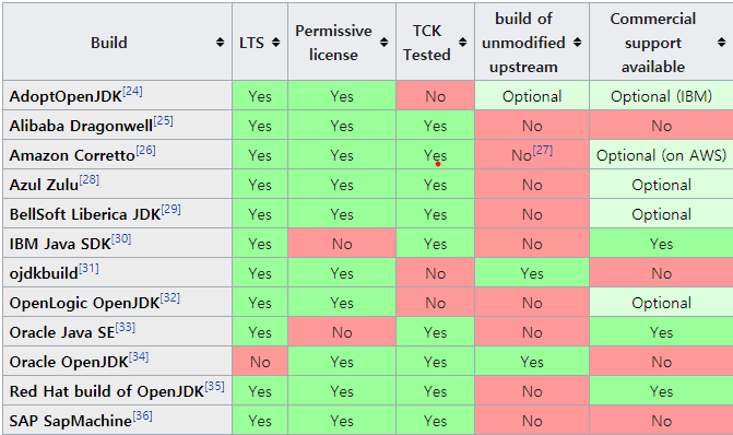 다른 JDK는 아래 표를 참고하자